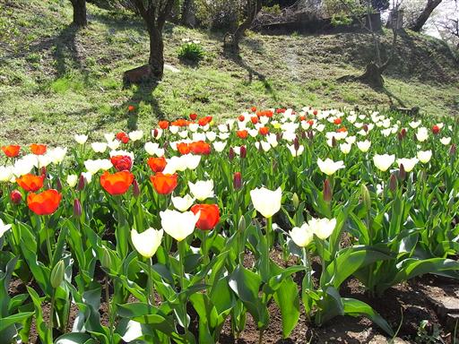 チューリップ以外にも周りにはたくさんの花が植えられている。