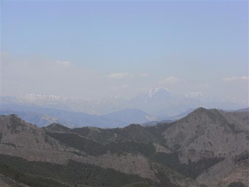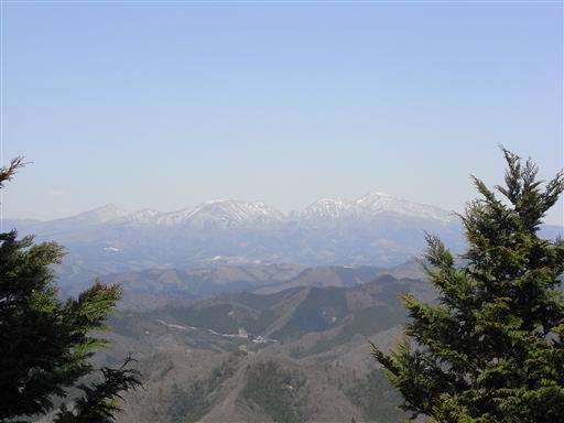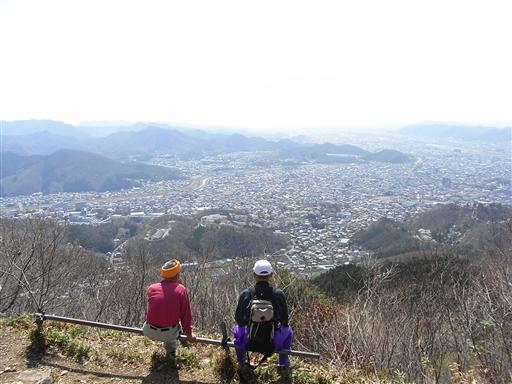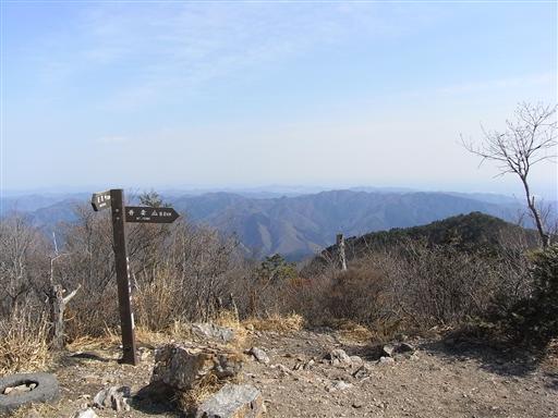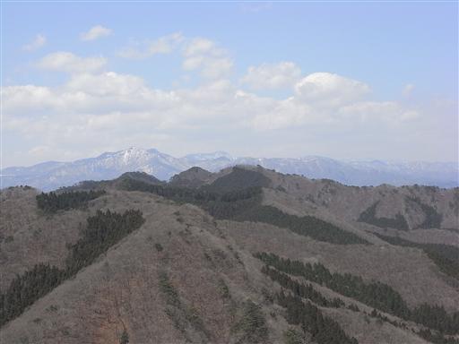 山頂からは安蘇山塊の低い山並が見渡せる。