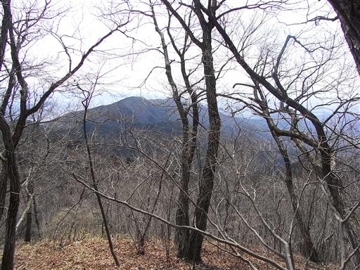 展望はあまり開けない尾根道だが、所々でゆったりとした裾野を持つ赤城山が眺められる。