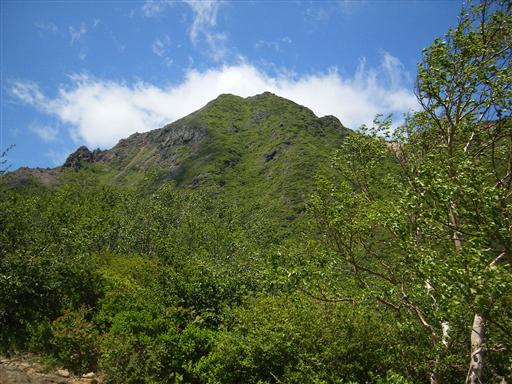 正面に見える朝日岳は一角が崩壊している。