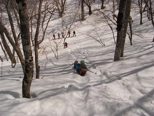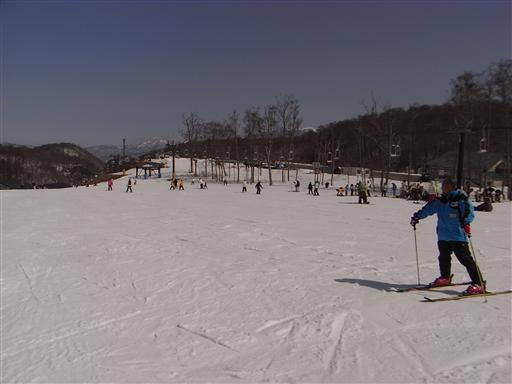 スキー場のリフト乗り場に向かってゆっくりと下っていく。