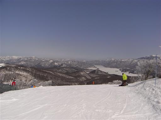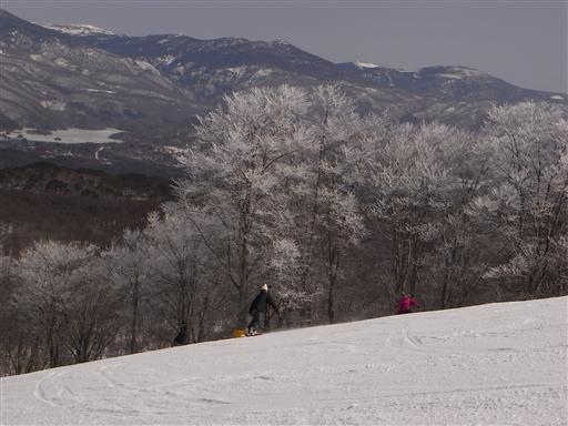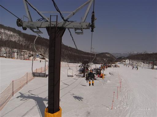 リフトの横は上級者のスキーコース。スキーヤが気持ちよさそうに滑り降りていく。