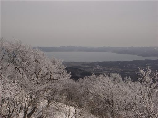 眼下に猪苗代湖が見える。琵琶湖とは比べられないが、非常に大きな湖だ。