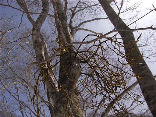 ヤドリギは寄生植物で、他の木の幹に根をおろして養分を吸い取って生きている。