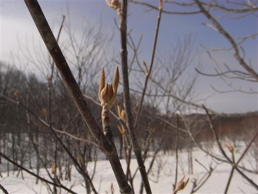 このべたべたで冬の寒さから新芽を守っているそうだ。
