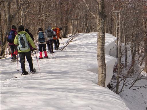 もう3月なので雪はかなりしまっている。スノーシュー無しでも歩けそうだ。