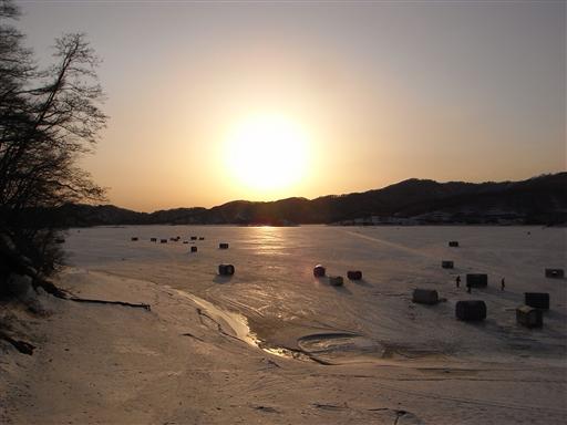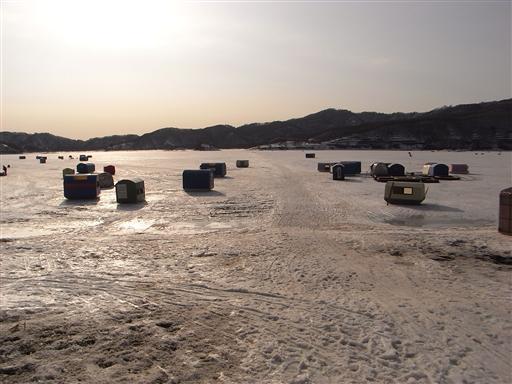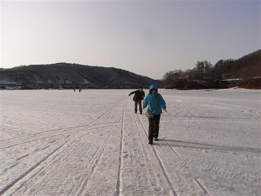 湖は完全に凍りついていて、その上を自由に歩ける。