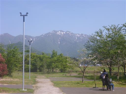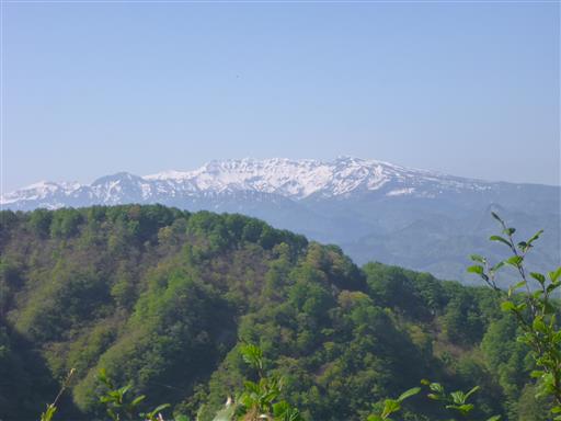 東側の山々。右奥の山は懐かしい御神楽岳だ。