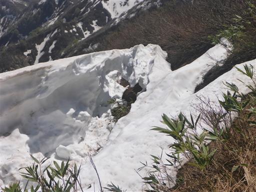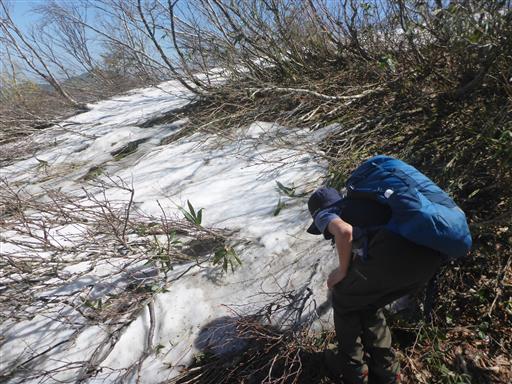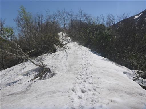 今回は往復登山だが、下山は雪の上を歩いてみることにする。