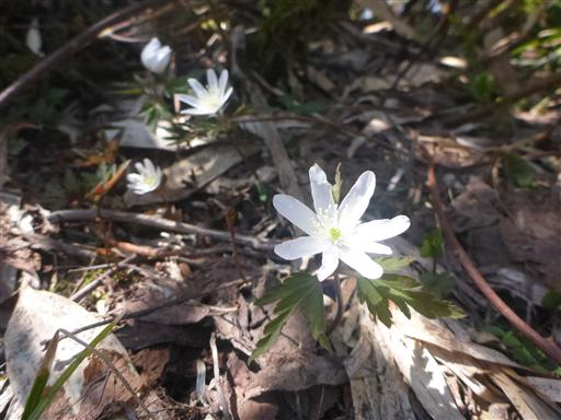 山頂直下でキクザキイチゲを発見。この花に出会うのは初めてだ。