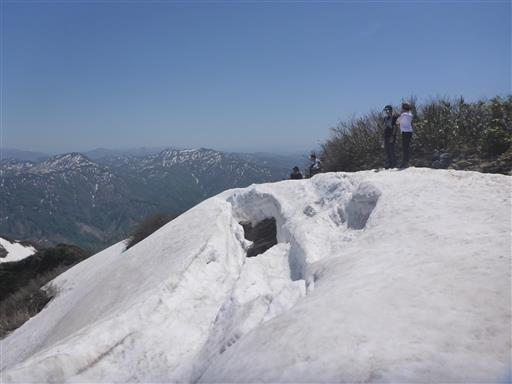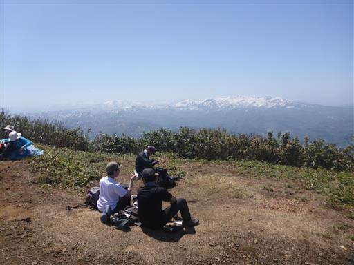 山頂からは360度の絶景が広がる。こちらは守門岳と浅草岳。