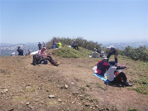 左に見えるピークが目指す粟ヶ岳山頂。もう目と鼻の先だ。