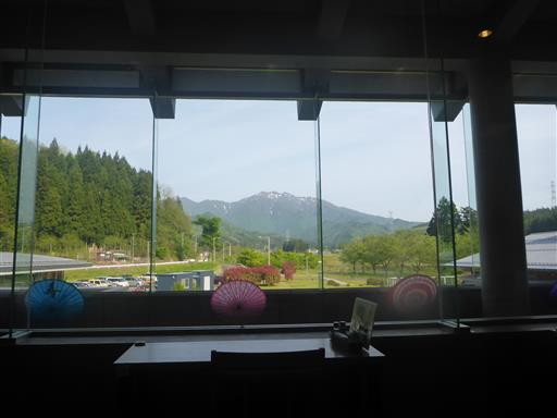 露天風呂や館内の休憩所からも粟ヶ岳を望むことができる。