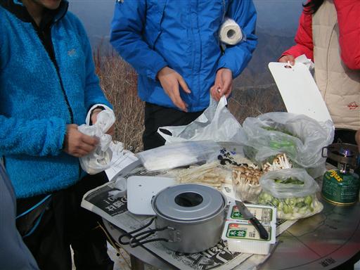 皆で持ち寄った食材を集める。