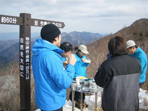 展望のよい赤岩に到着したところで昼食タイム。