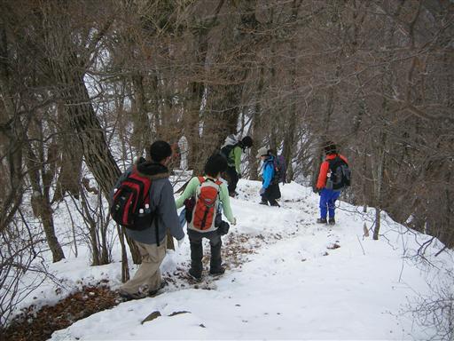 登山開始地点から雪が積もっているが、踏み跡はしっかりしている。
