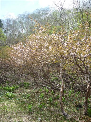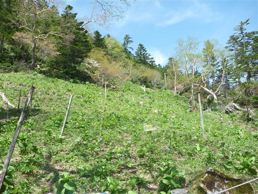 ここは厳重な電気柵に囲まれており、その部分だけシラネアオイが咲いている。