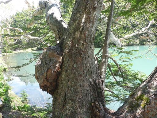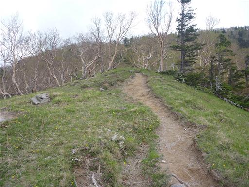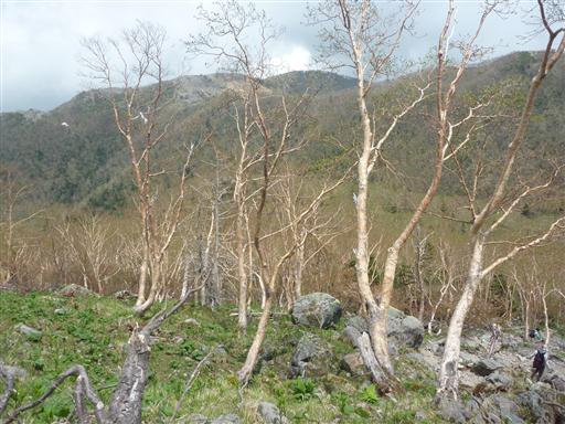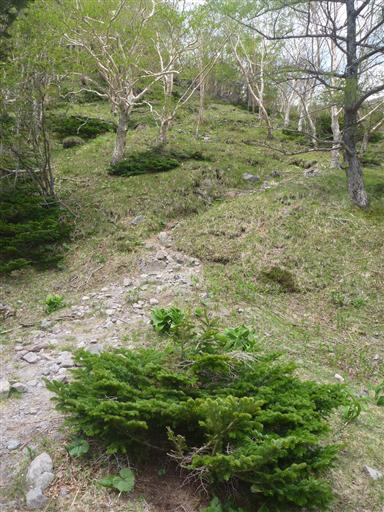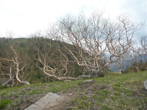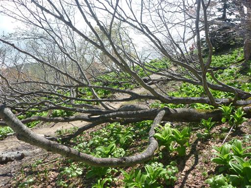 この辺りは寝ている木が多い。雪の重みの影響だろう。