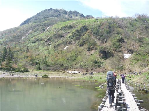 ここで山頂の風景は見納め。五色沼に向かって下って行く。