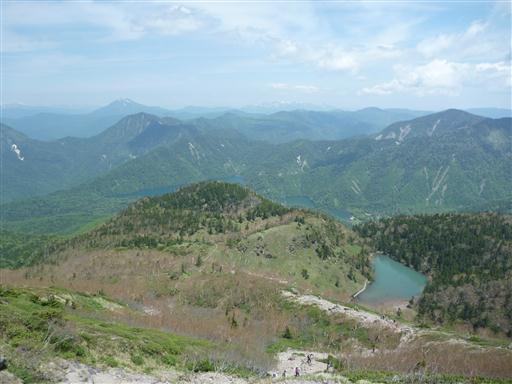 遠くには燧ヶ岳を始め東北の山々、足元には弥陀ヶ池、菅沼、丸沼が見えている。