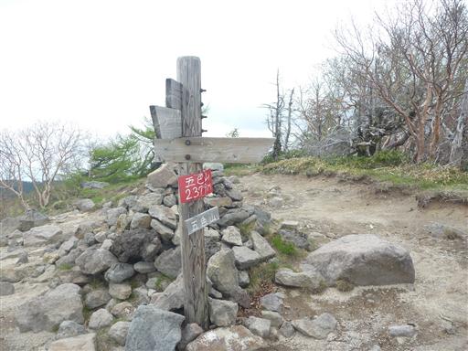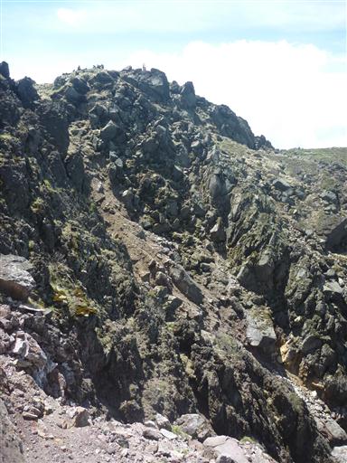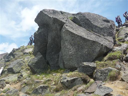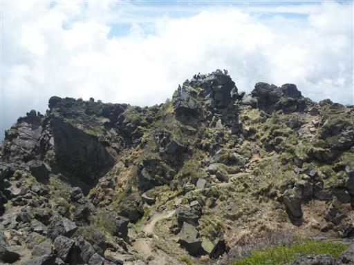 山頂の一角に到着。目の前の岩峰が最高地点のようで、人影がたくさん見える。