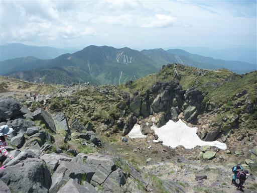 山頂から錫ヶ岳方面を望む。日光白根山から錫ヶ岳を経由して皇海山まで