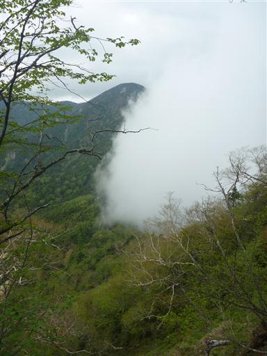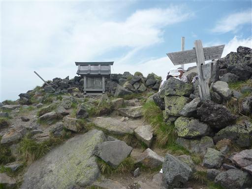 山頂にいる人の話では、ここから表日光の素晴らしい展望が広がるらしいが、今は全て雲の中だ。
