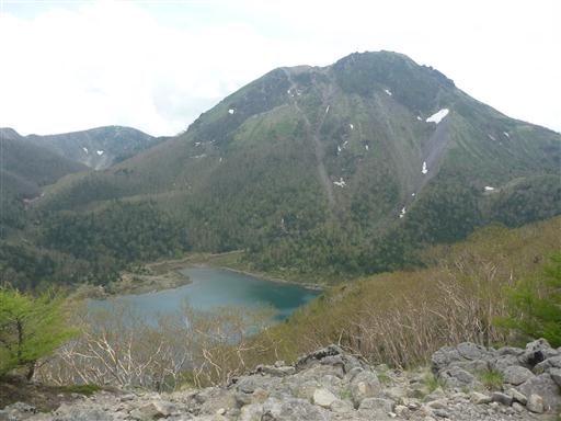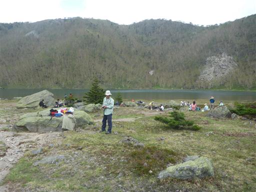 弥陀ヶ池に到着。ここで日光白根山の溶岩ドームが姿を現す。
