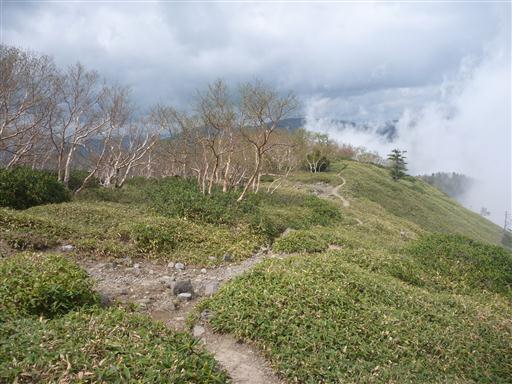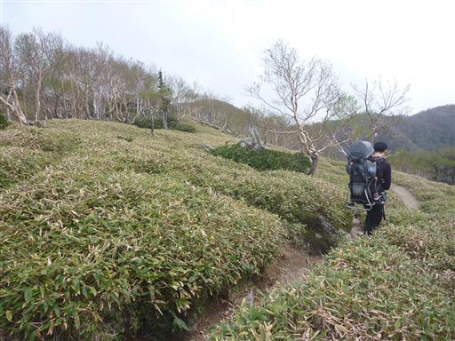 笹原の道を歩いていく。展望の良い尾根道で気持ちの良いところだ。