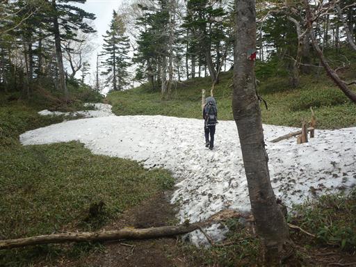 溝になっている部分にはまだ豊富に残雪が残っている。
