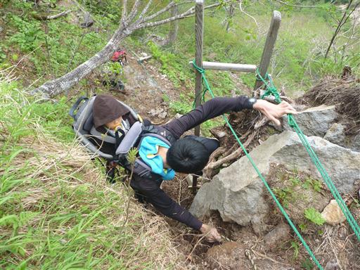 この下山道は急傾斜だ。使い物にならない梯子の脇を下って行く。