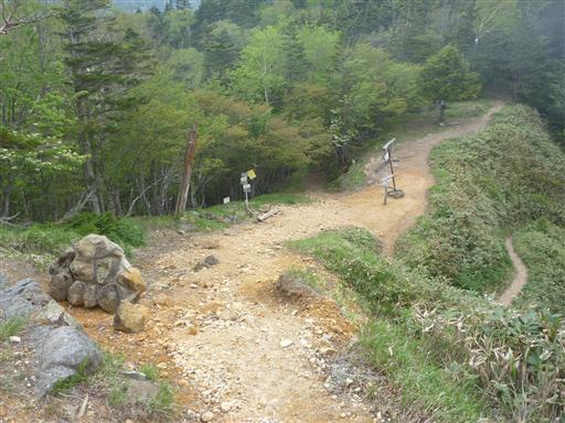 金精峠に到着。このまままっすぐ行くと温泉ヶ岳に通じている。
