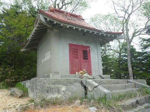 昼食をとったら下山開始。山頂の一角には神社が祀られている。
