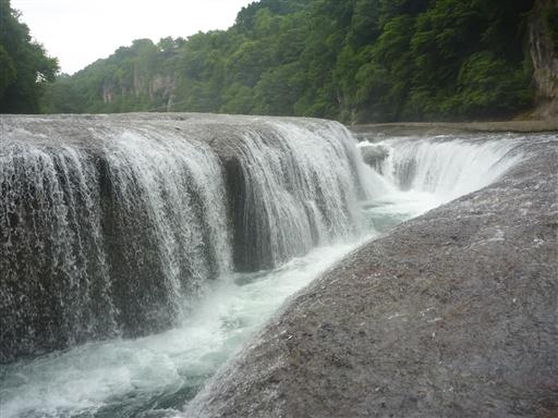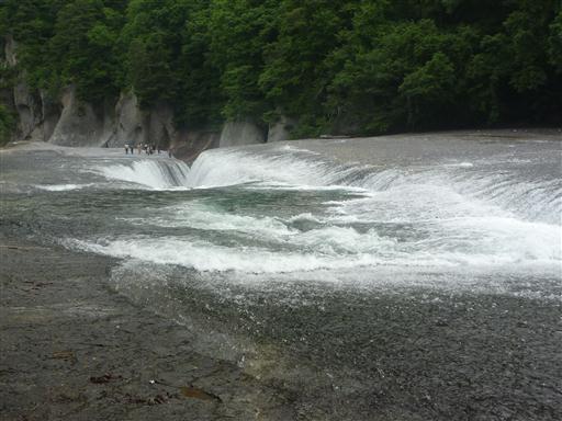 吹割の滝。三方から水が流れ落ちる姿から東洋のナイアガラとも呼ばれているらしい。