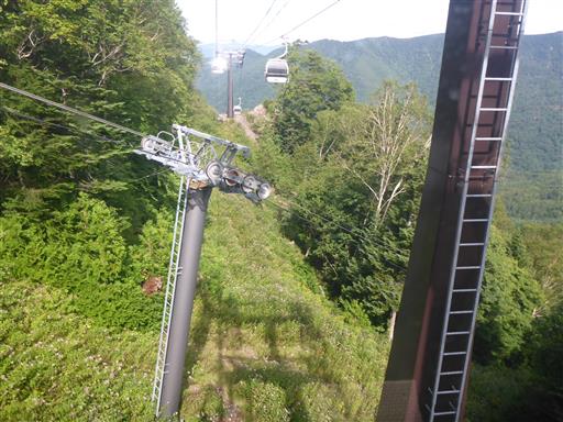 なんとゴンドラとリフトが立体交差している。危険はないのだろうか?