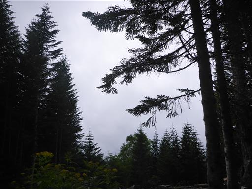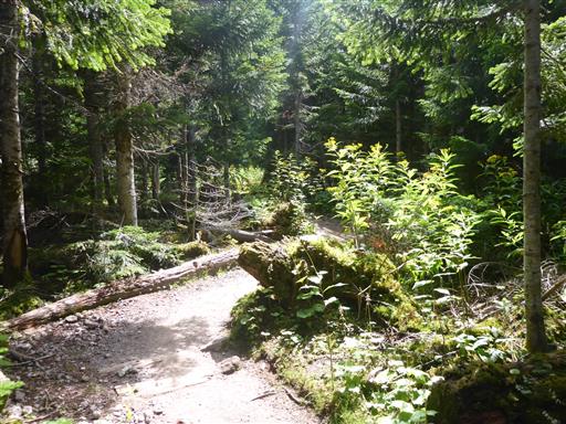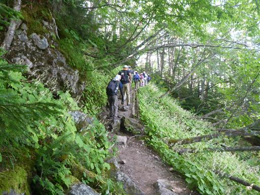高山とはいえ最初は深い森の中の登山道が続く。