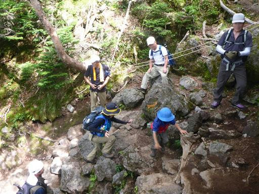 急斜面の下りが続く。手を使いながら下りていく。
