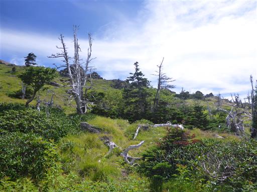 森林限界を超えたのか、火山の影響か分からないが、