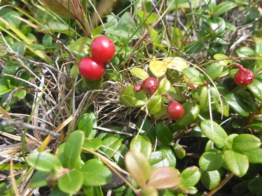 足元にはコケモモの実がなっている。