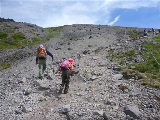 この辺りは火山特有の砂が堆積した登山道で非常に登りにくい。