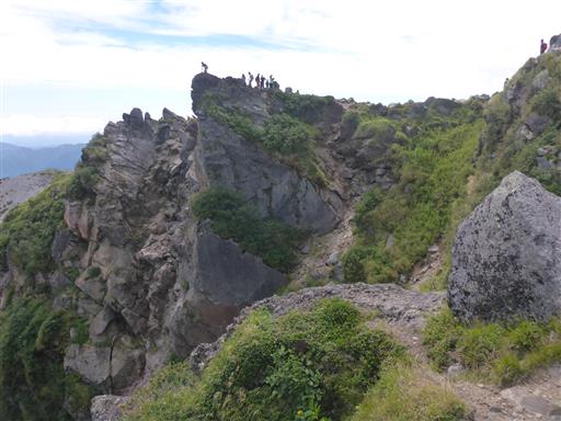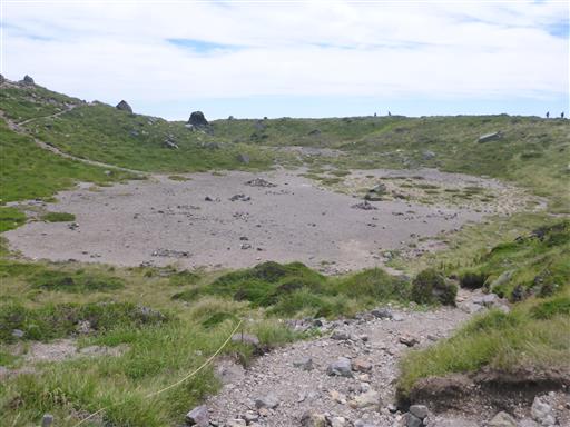 山頂部の一角に到着。目の前に見えるのは噴火口だ。