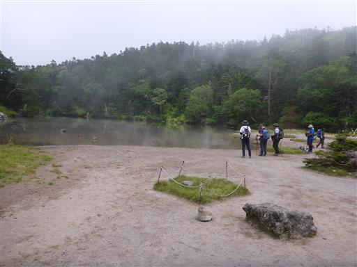 弥陀ヶ池に到着する。池から霧が発生している。