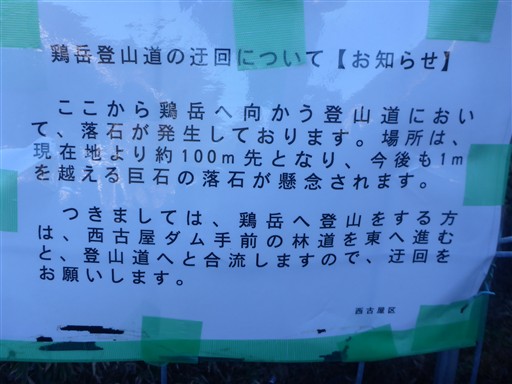 なんと、登山道が閉鎖されているとのことで、迂回をするように記載されれている。