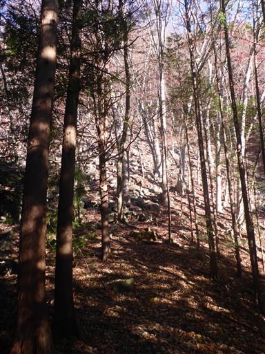 斜面が突然急になる。石がたくさん転がっているが、地質が異なるのだろうか?