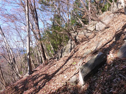 山頂直下は急斜面。
