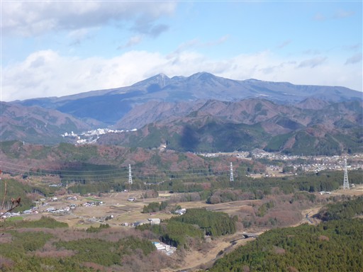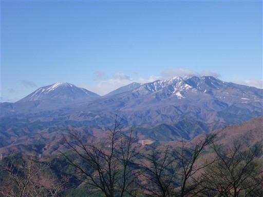 山頂からは高原山が見える。