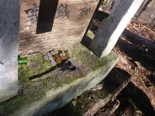 祠の前にはなぜかハサミが奉納されている。