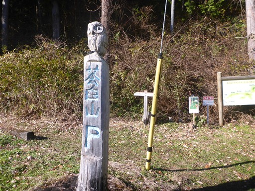 毘沙門山の手前に茶臼山の標識が立っている。