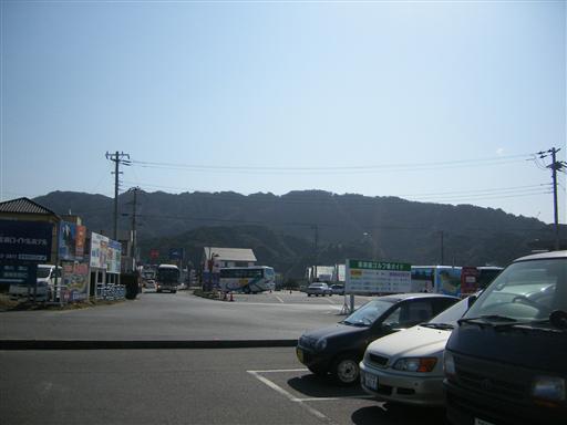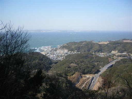 金谷港に到着。奥に鋸山の稜線が見えている。