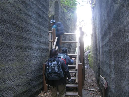 鋸山の大岩壁に到着。岩壁にも大きな穴があいている。